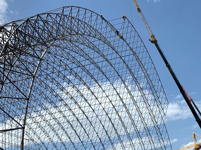 (2)网架加工前应对现场尺寸进行复测,确认无误后方可进行加工、安装;网架制作、运输、安装应遵守《空间网格结构技术规程》JGJ7-2010、《钢网架大理螺栓球节点》JG/T 10-2009、《钢网架大理螺栓球节点用高强度螺栓》 GB/T 16939-2016、《大理钢结构大理工程大理施工规范》 GB50755-2012、《大理钢结构大理工程施工质量验收标准》 GB50205-2020。